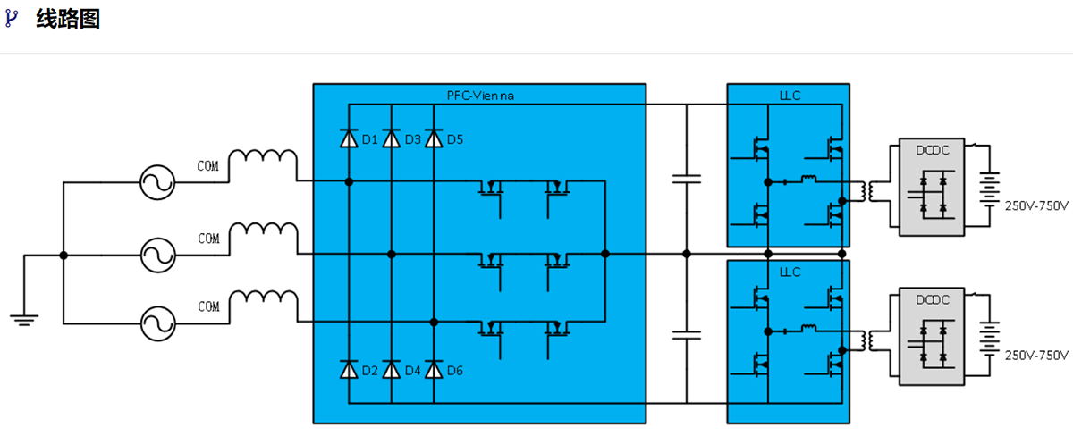 直流电动汽车充电器是一种吸引力十足的选择,因为它们可以实现比标准交流电动汽车充电器更高效的充电速度,后者多用于电动汽车家庭使用者。通常,高功率直流充电器设计会使用交流-直流和直流-直流转换器将输入的三相交流电转换为充电汽车所需的直流电压250V-750V,构建15 kW 至 30 kW子功率模块。